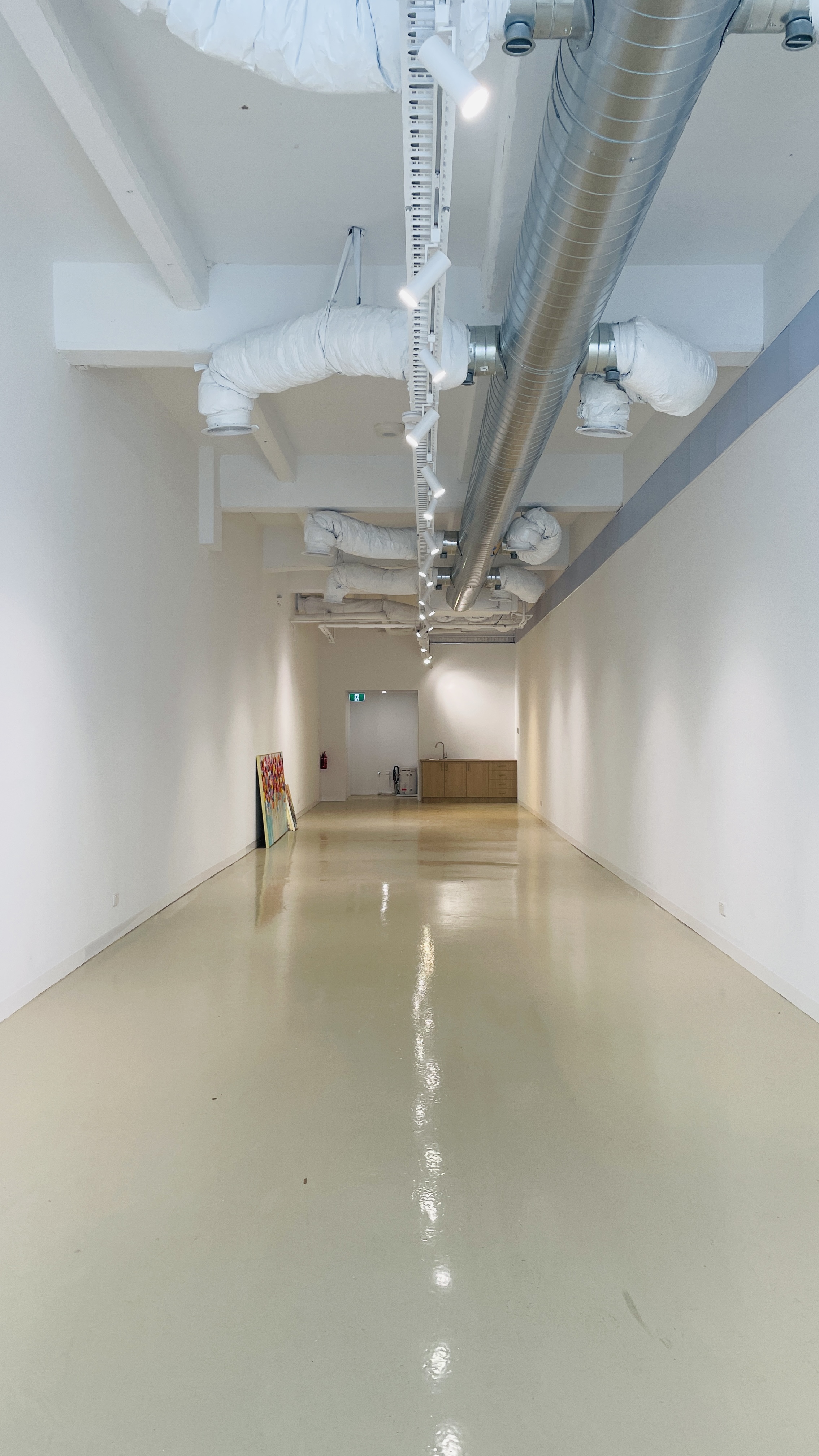 * High ceilings with exposed concrete floors