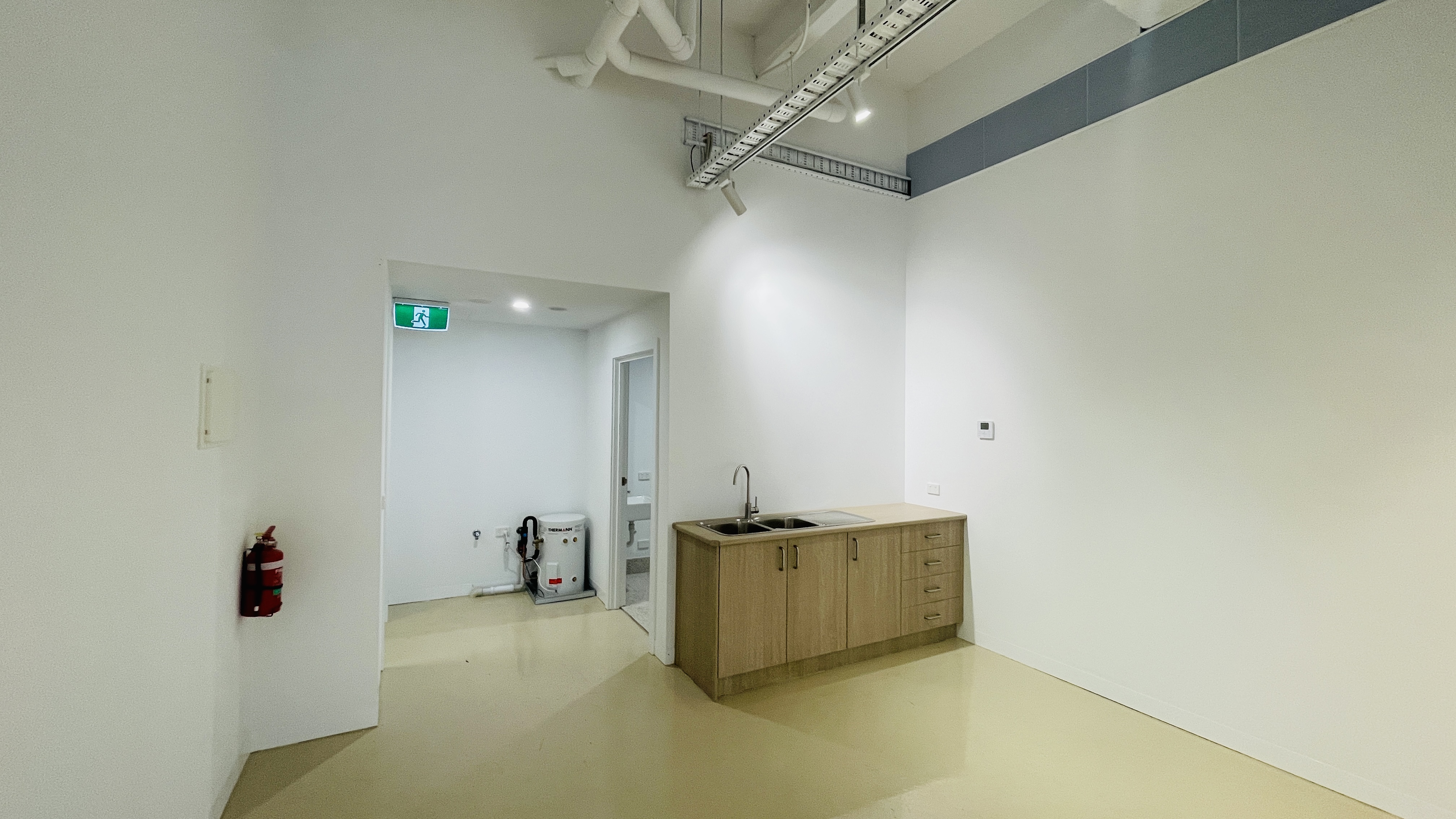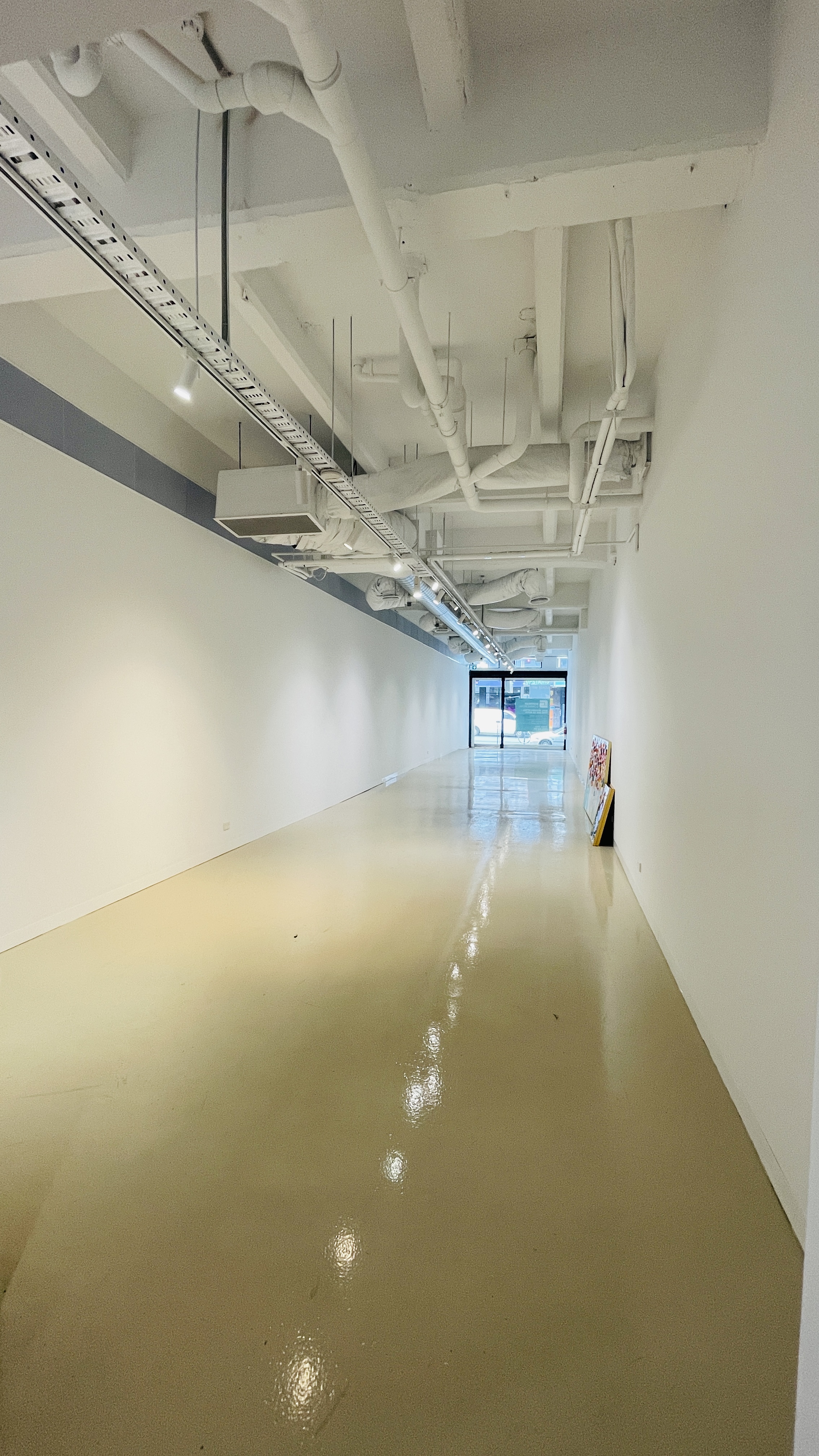 * High ceilings, timber floor on concrete