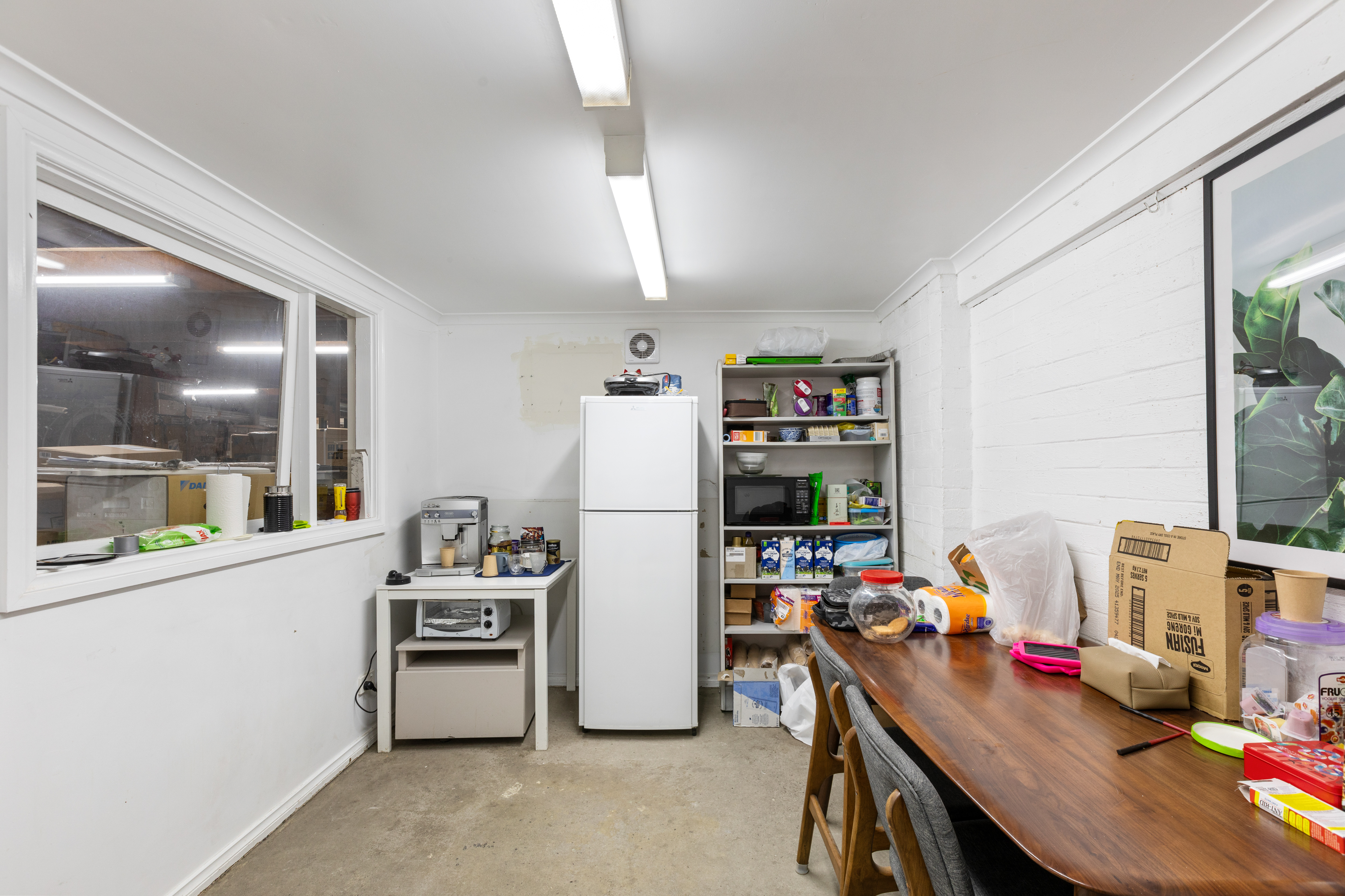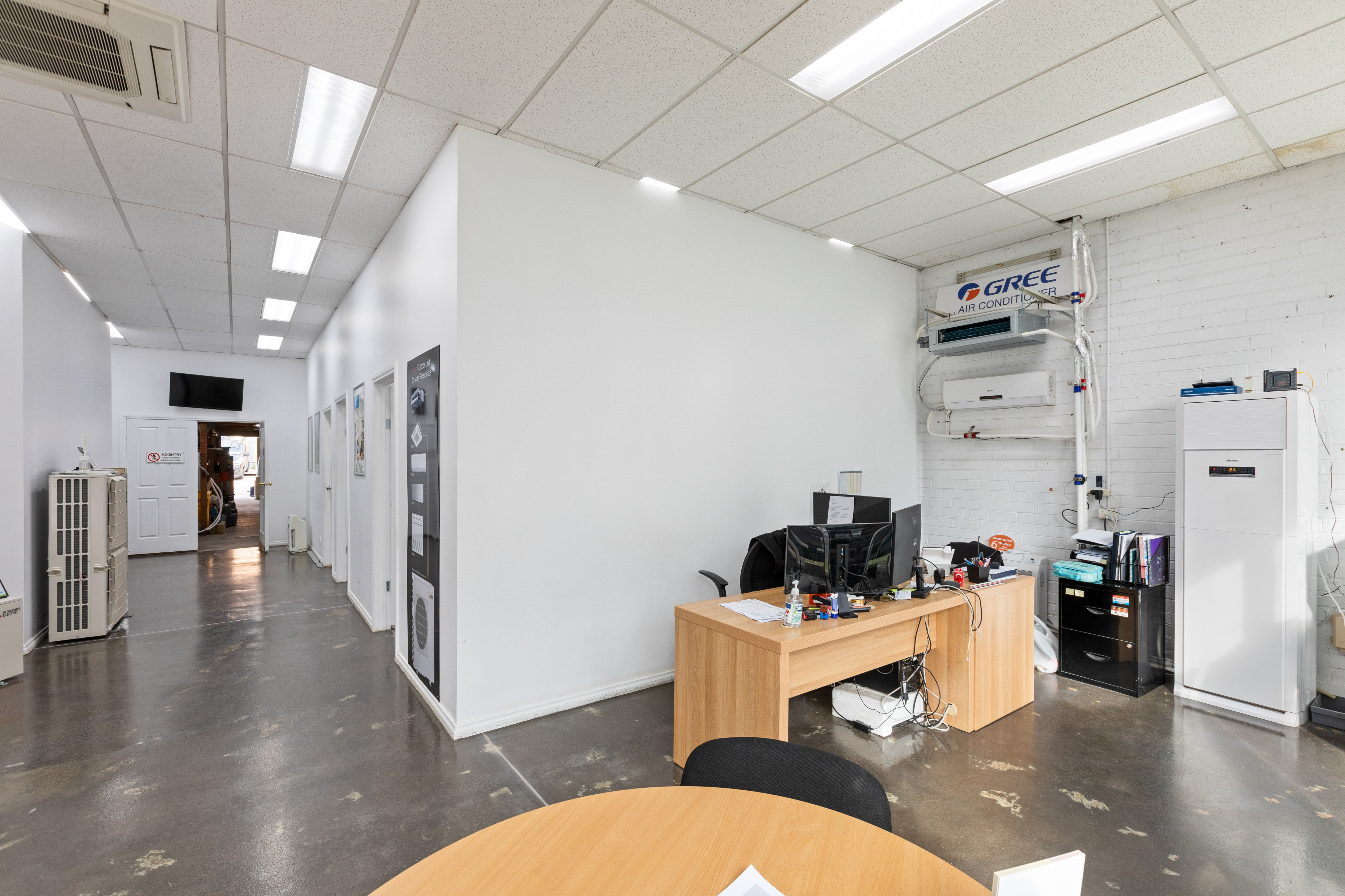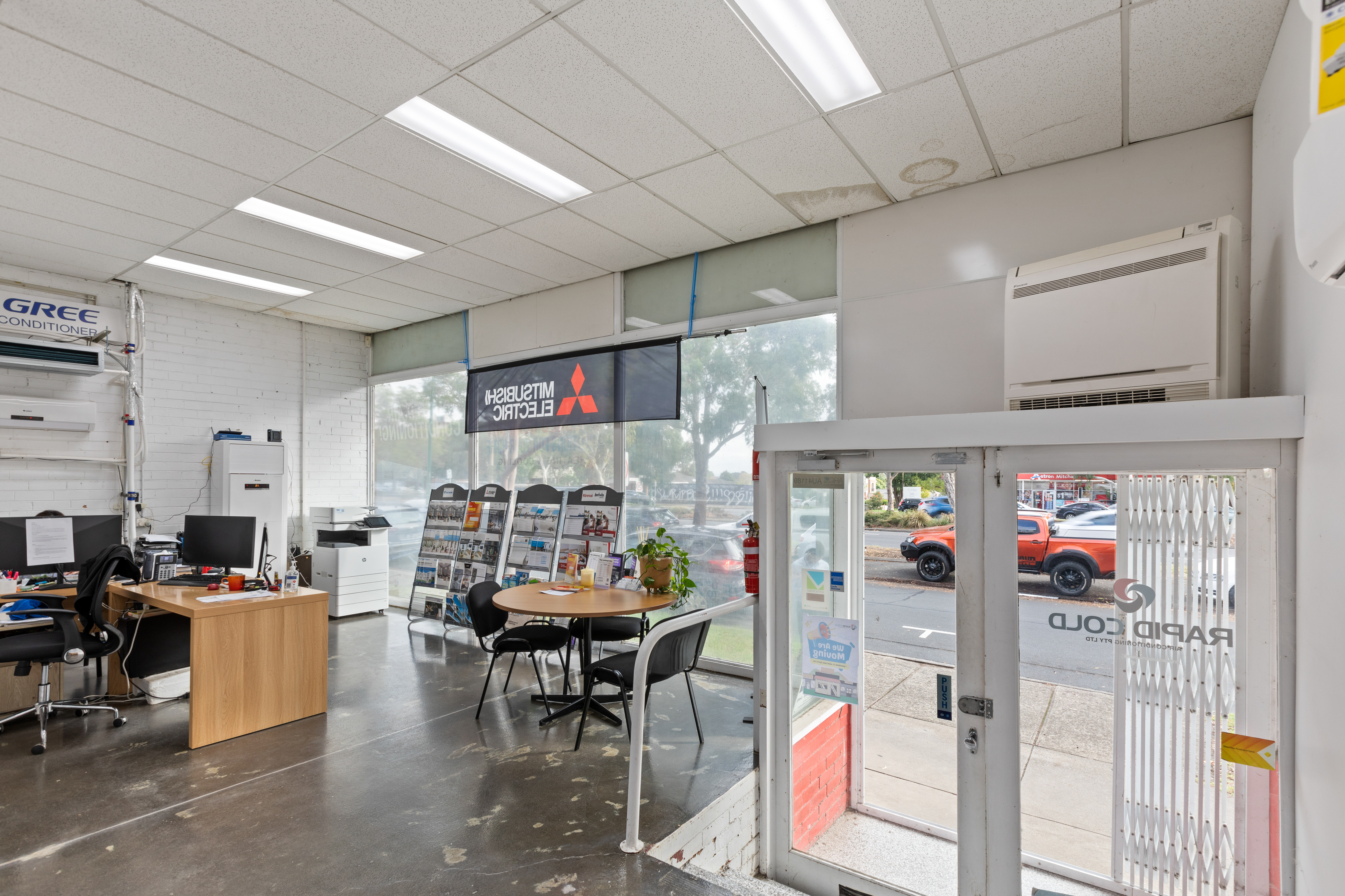 The property features a prominent retail space at the front, offering excellent visibility and exposure to passing traffic. This area includes partitioned rooms ideal for breakout spaces or private consultations. At the rear, a functional warehouse component provides ample storage capacity, making it perfect for logistics, inventory management, or general operational use.