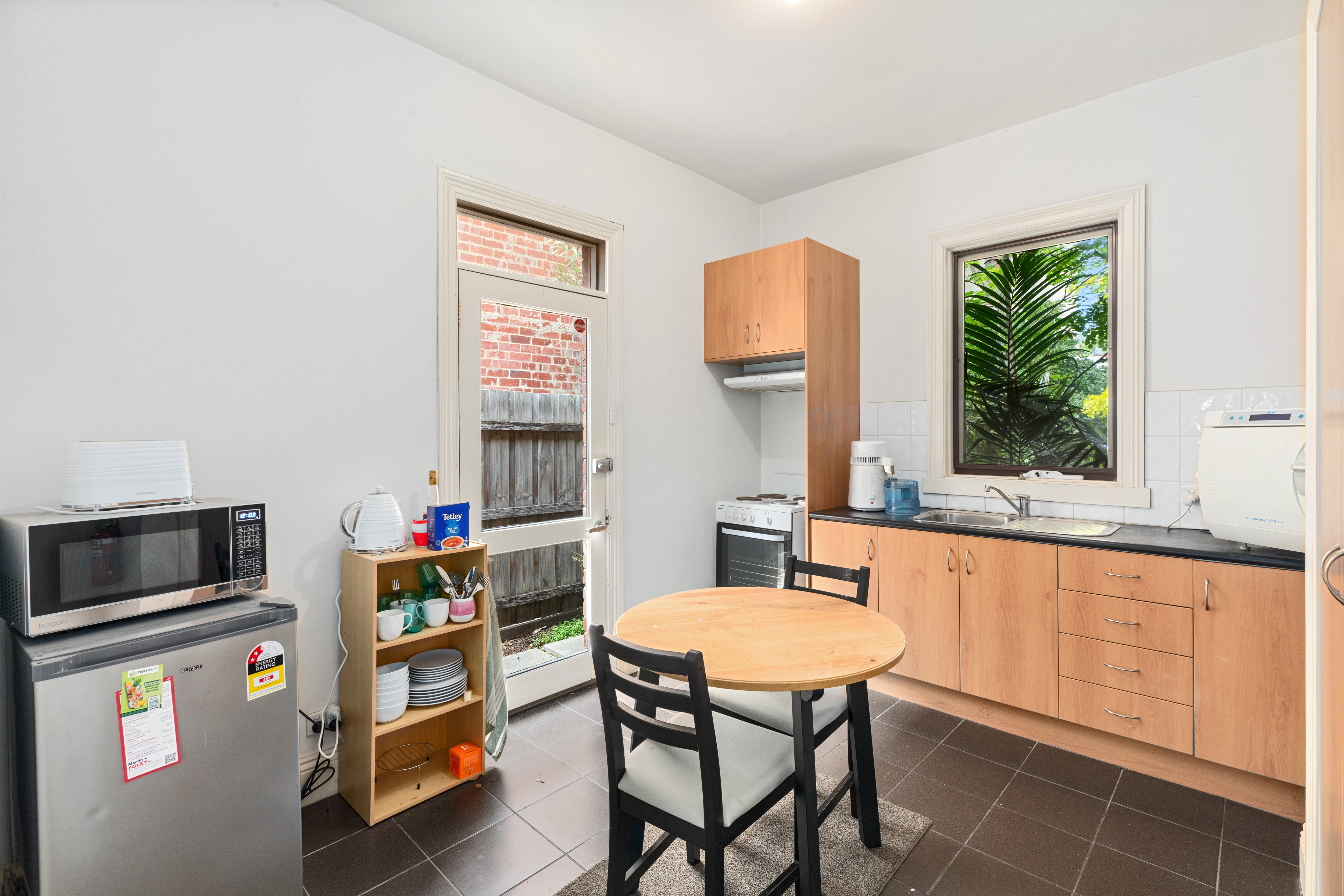 The property is equipped with a private kitchenette, toilet facilities, and a shower, ensuring convenience for both staff and visitors. Additionally, a private courtyard at the rear provides a great outdoor space for relaxation or informal meetings.